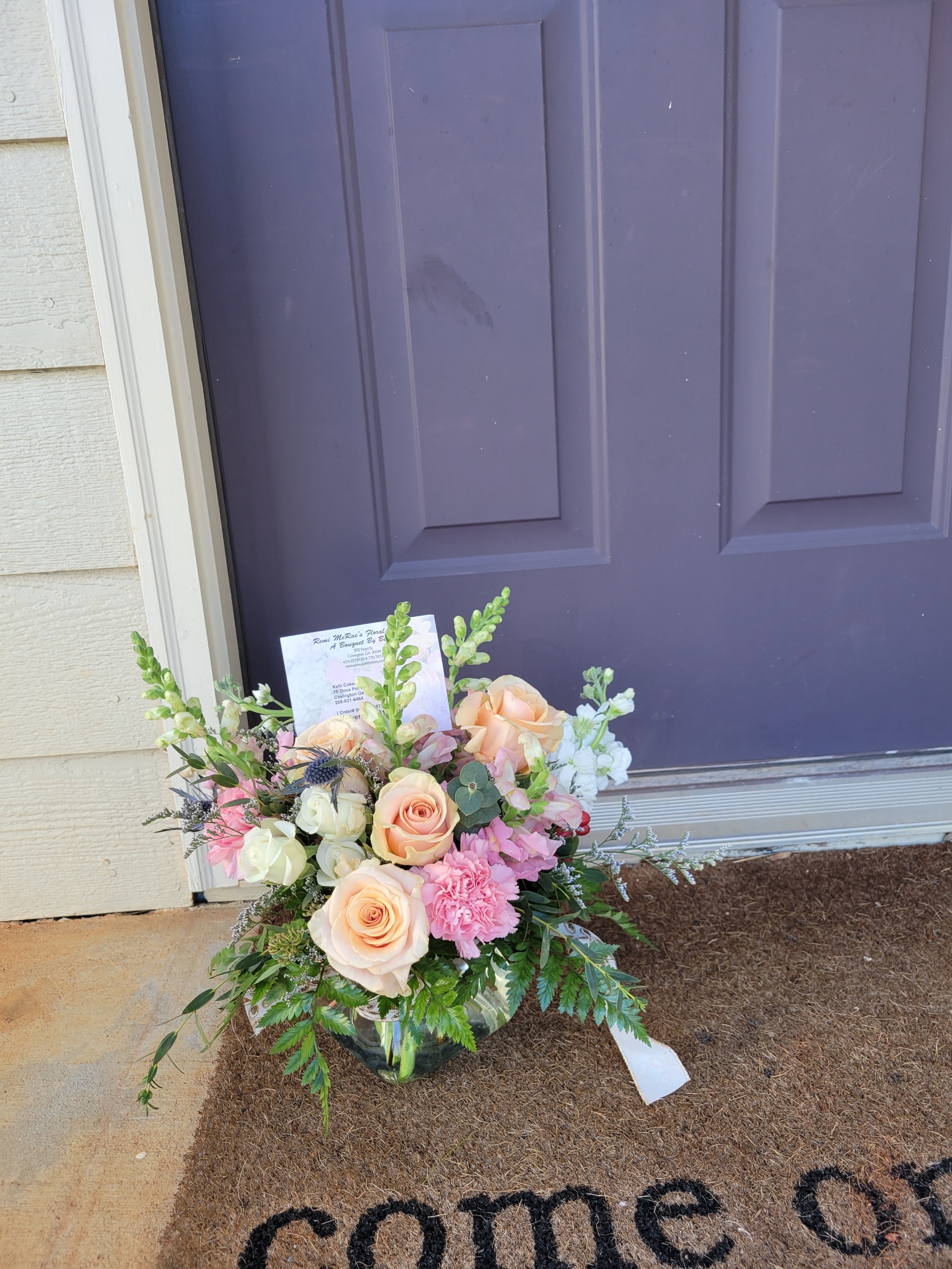 Great Service & Beautiful Arrangements. Everyone loved the roses delivered to my Mom at Covington Manor. Quick delivery and Personal service. I always try to buy Locally. They do it better.