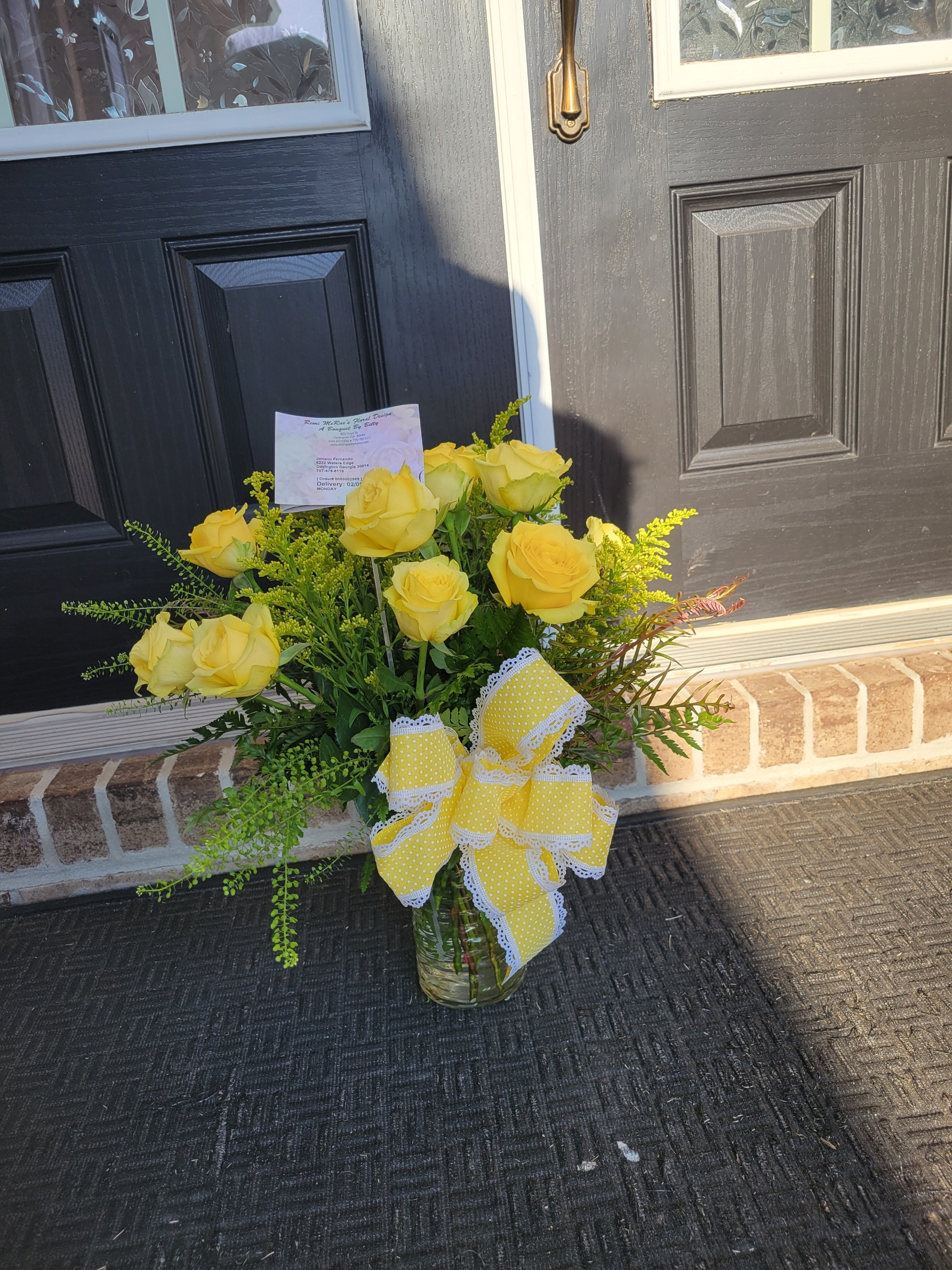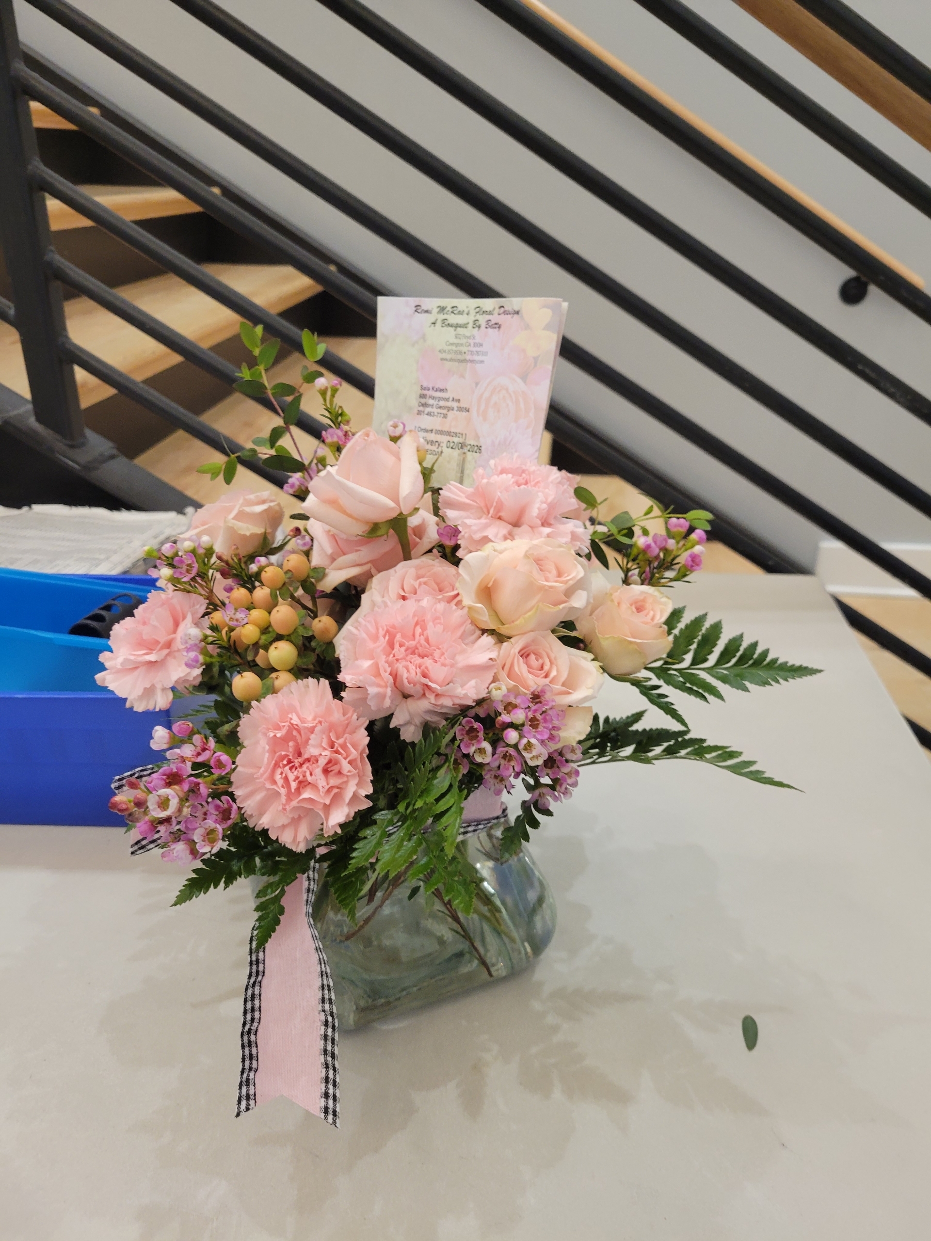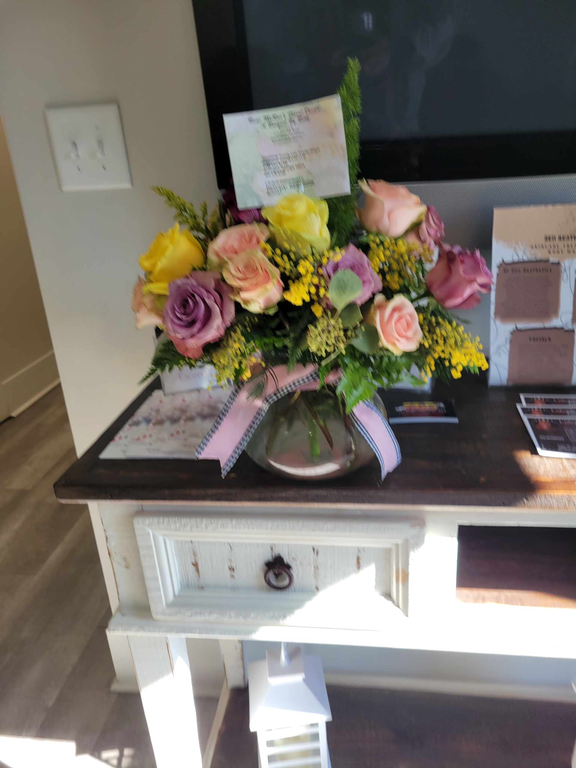 Beautiful arrangement!!!! The Roses were absolutely amazing!!!! I love there were some full bloom and some getting ready to bloom. Thank you!!
