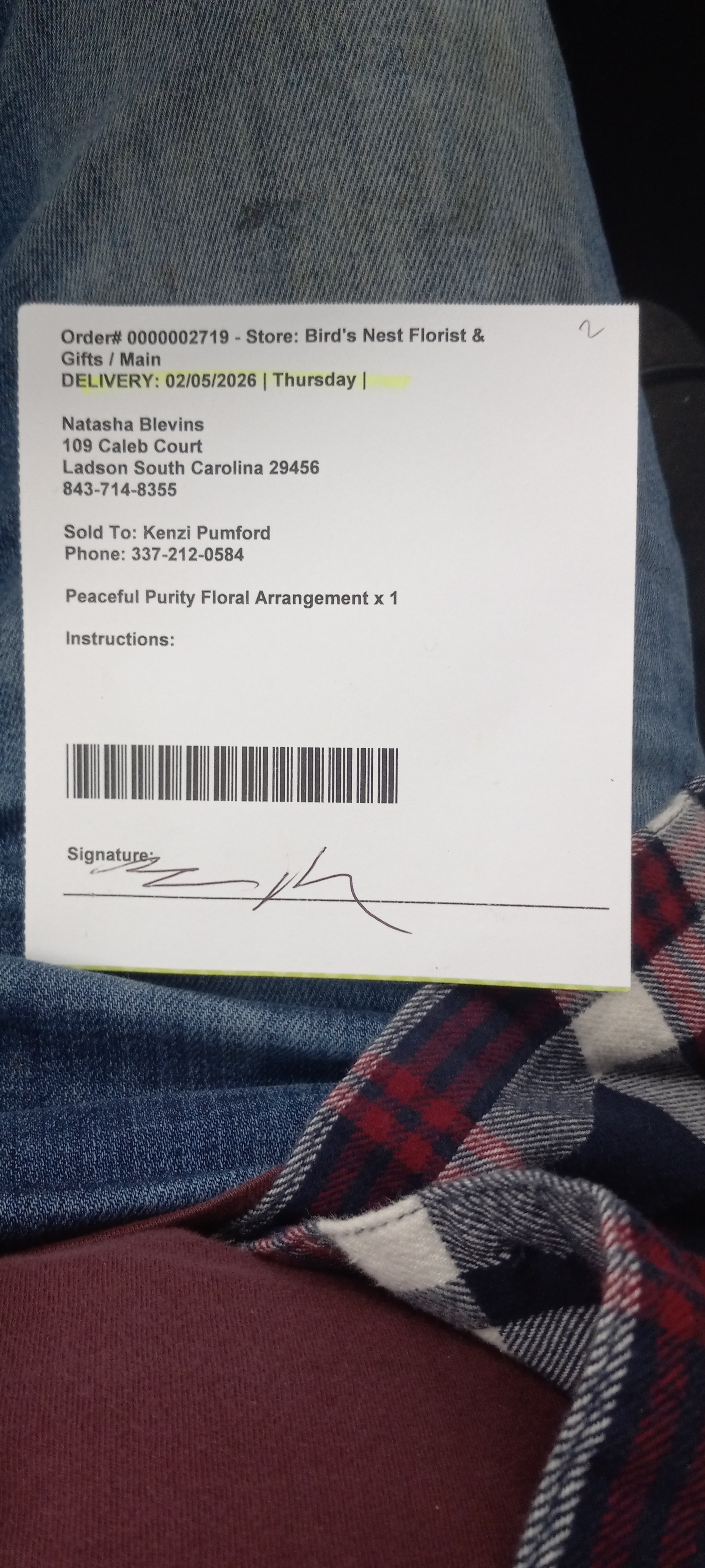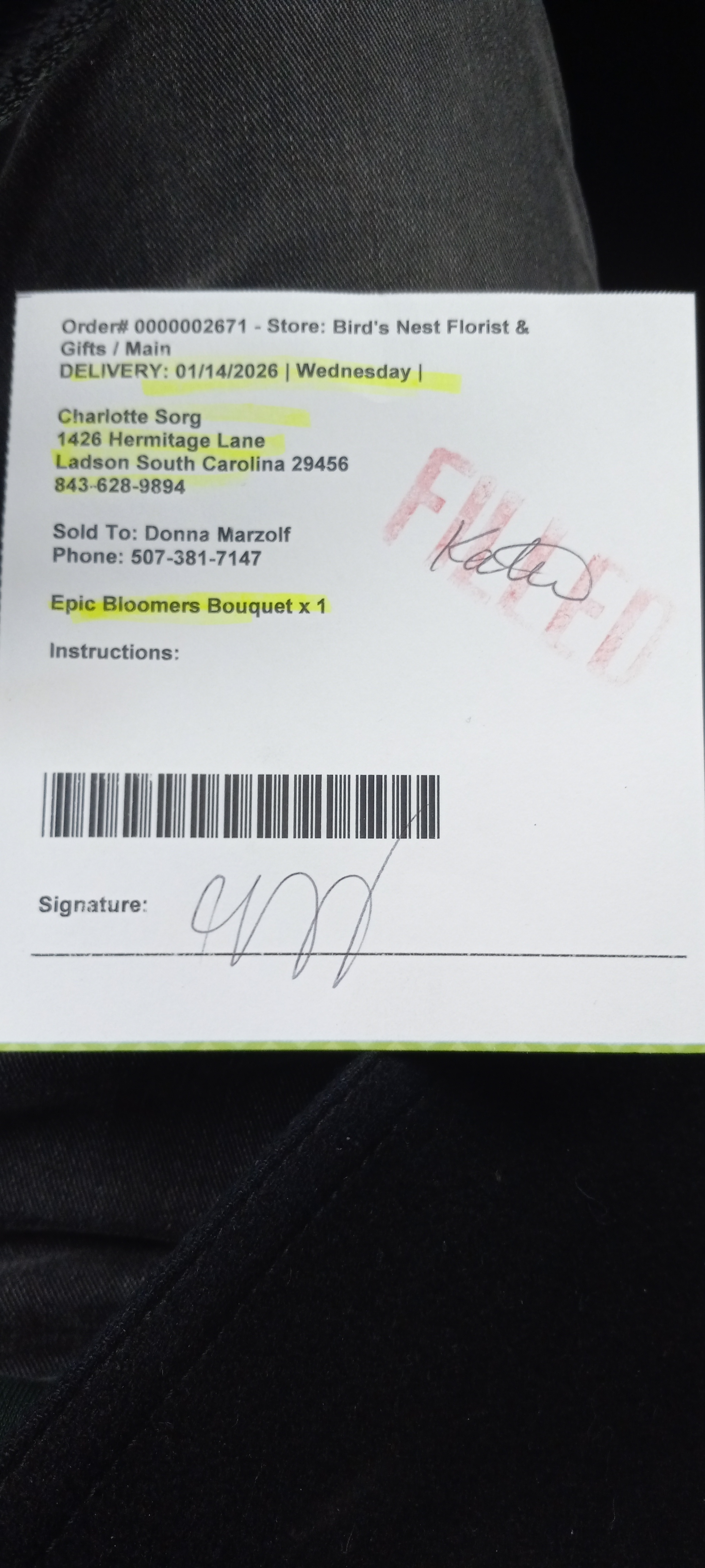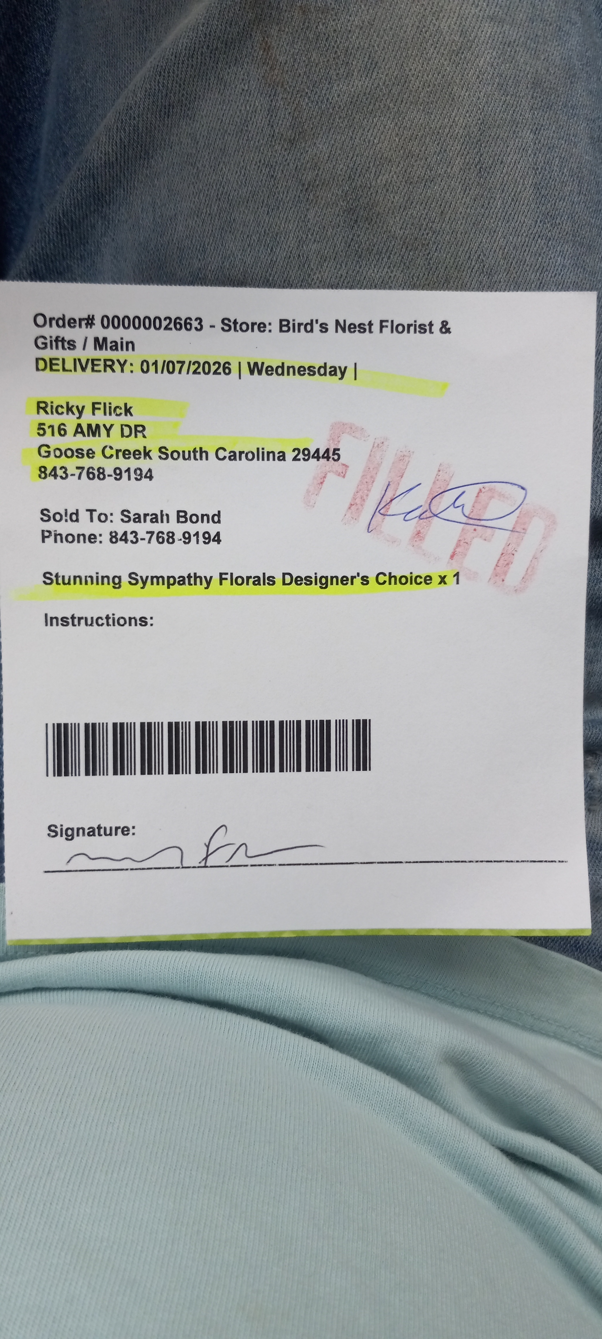 Bird's Nest Florist's Reply: